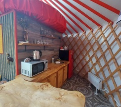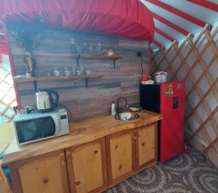 Отличное место. Отдохнули всей семьёй, хозяева очень гостеприимны, подскажут по любому вопросу( покушать, экскурсии и т.д) снимали красную юрту(внутри 4 спальных места, туалет,душ,сплит система, кухонная зона,телевизор). Так же в нашем распоряжении была и беседка и мангальная зона. Всё очень понравилось. Удобное расположение для прогулок(кто любит)