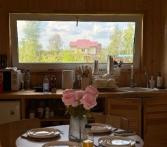 Домики сделали как для себя. Территория уютная. Атмосфера дружеская. В доме есть всё и даже больше! Я была в Бохо. Это восторг!