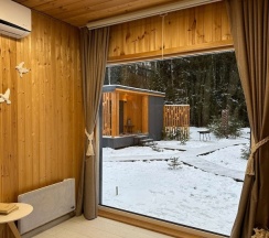 Запоминающийся отдых, территория расположена рядом с лесом, в лес можно сходить погулять, сами домики чистые, уютные, панорамные виды завораживают взгляд, кто устал от городской суеты, точно следует съездить, не пожалеете