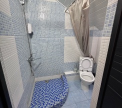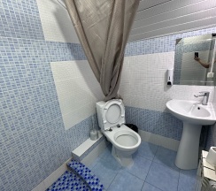 За время отпуска дважды ночевали в этой гостинице. Первый раз ночевали в номере 1. Комната маленькая, но в целом уютная. Плюсы: очень приятная администратор, бесконтактное заселение удобная кровать, есть кондиционер, телевизор и холодильник.Минусы: падала шторка в душе (нужно заменить пластиковый каркас), вода в душе плохо уходит, не хватало чайника, но на этаже есть кулер. Второй раз были в номере 2, он просторный с большой кроватью, столом и креслом, душевая здесь хорошая. На этаже также есть стиральная машина и микроволновка