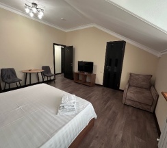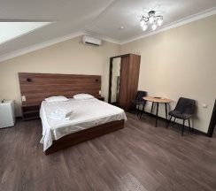 Уютные номера, чисто, комфортно. Есть кондиционер, телевизор, холодильник, шкаф-купе, удобный матрас. Приятная девушка-администратор, решит любой вопрос) на втором этаже есть кафе. Может ценник чуть выше, чем в других кафе поблизости, но здесь все красиво, приятная музыка, чистота. Мы останавливались на 3 суток из Самарской области. Рекомендую