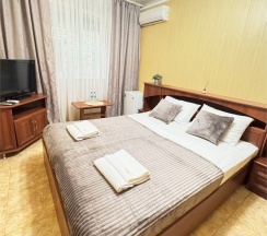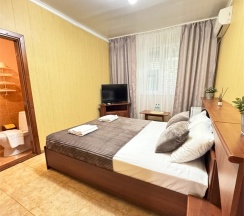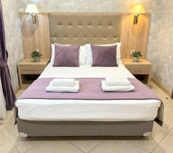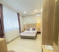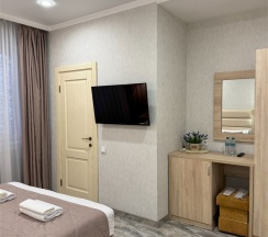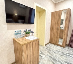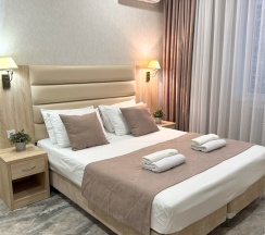 Уютный двухместный номер состоит из комнаты и небольшого санузла (общая площадь 13-14 м2). Номер оснащен двухместной кроватью с ортопедическим матрасом, прикроватными тумбочками, шкаф для одежды, журнальный столик, мини-холодильник, кондиционер, телевизор с плоским экраном. Номер укомплектован белым постельным бельем, полотенцами премиум качества. В ванной комнате, укомплектованной феном и набором туалетно-косметических принадлежностей, установлен душ.