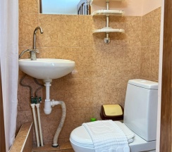 Две общие ванные комнаты с душем и туалетом расположены рядом на этаже. Чайная станция в холле на этаже. На верхние этажи подниматься можно только по лестнице.