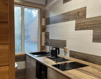 Отличное место, шикарная природа. Чистые, уютные номера, в номере все необходимое: холодильник, чайник, микроволновая печь,посуда. На территории имеются мангальные зоны, и детская площадка.