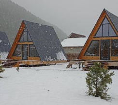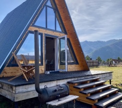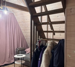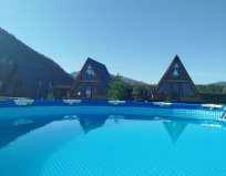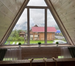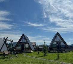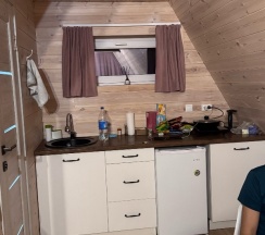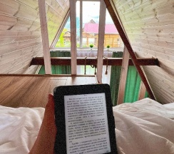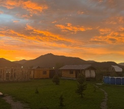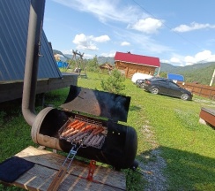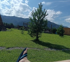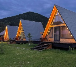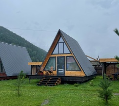 Отдыхали с друзьями на данной базе, очень понравилось, домик просторный и уютный, есть все: холодильник, микроволновка, плита, столовые приборы, душ и туалет внутри, телевизор, вентилятор, так же есть система теплого пола. С улицы прекрасный вид на горы, баня просто топ. Хозяева гостеприимны, добрые и веселые. Очень советую👍