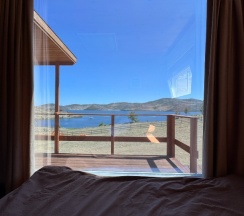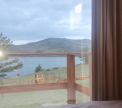 Отдыхали недавно (26-28 сентября 2025года), остались очень довольны. Прекрасное расположение,до озера буквально 200 метров. Расположение домиков превосходное, на одной линии, друг друга домики не закрывают. Панорамные окна открывают потрясающий вид на озеро, ночью на звёзды. Номер уютный и чистый, оборудован всем необходимым, все продумано. Особое внимание заслуживает баня! Панорамное окно из парной открывающие потрясающий вид на озеро, на веранде лежак, супер. Мангальные зоны оборудованы всем необходимым, (шампура, решетки, савочки, вода) Погода в эти дни стояла, для конца сентября очень теплая, солнце, воздух чистый и ароматный. Ощущение спокойствия и гармонии. И самое главное тишина,расслабляет от городской суеты. Большой плюс, что принимают с животными.