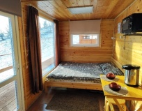 Отличное место и атмосфера. Новые чистые домики с потрясающим видом из окна. В доме есть все необходимое для проживания. Есть небольшой спортивный детский комплекс, песочница