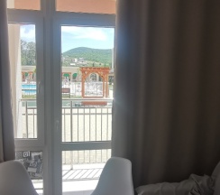 У нас была двухкомнатная квартира оборудованная всем для комфортного проживания. Балкончик с видом на бассейн позволял релаксируя наблюдать за детьми.