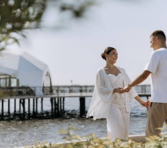 При выборе свадебной площадки объездили все окрестности Казани, Волга Спа вне конкуренции. Первая береговая линия, волшебный шатер в который невозможно не влюбиться, высочайший уровень комфорта в домиках, есть всё: бани, сауна, чаны, бассейны, пляж, пристань, беседки, мангалы...👍