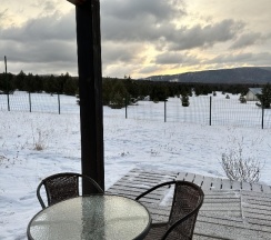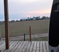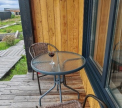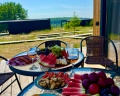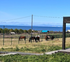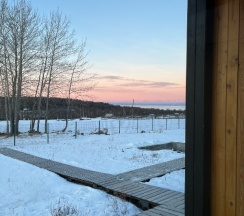 Домики расположены в живописном месте: лес и Байкал видны с террасы дома.Удалось насладиться природой, надышаться свежим воздухом,выпить бокал вина у костра. На утро нас ждал вкусный завтрак с доставкой в домик:)