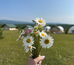 Комфортные домики, тишина, свежий воздух, выспалась)! Красивые закаты, вкусный завтрак на выбор, в номерах есть всё, с собой практически ничего везти не нужно. Тёплый приём!