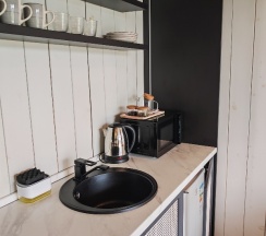 Современные красивые модульные дома, все необходимое имеется, хорошо подойдет для пар и семейных. Место для уединения и романтики) можно сделать красивые фотографии) ещё бы собственное кафе и бассейн, был бы полный шик😻