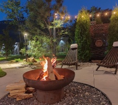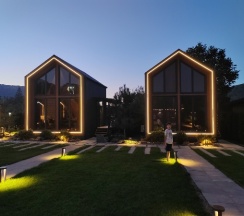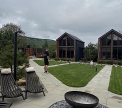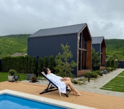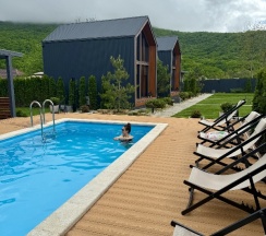 Очень атмосферное место. Однако, Есть плюсы и есть минусы. Плюсы:вид, чистый горный воздух, красивый интерьер и экстерьер домиков, уютно, особенно вечером с подсветкой и костровой зоной, в домиках ждёт очень вкусный и ароматный чай, персонал всегда на связи и готов помочь, территория небольшая, все видно, можно не переживать, отправляя детей на улицу или наоборот в дом за пледом, красивая посуда, все нужное для готовки, красивые наборы для душа, парковка перед базой. Минусы: всего один кондиционер в большом барне. Днем в августе не справлялся, жар шёл от крыши и от панорамных окон. Бассейн маловат для 4х домиков. Домики стоят довольно близко и когда соседи разжигают мангал, при ветре пепел может лететь в вашу сторону. Ещё очень жалко бедняжку-белку. Видно, что ей не сладко в клетке, места мало, так ещё и коты достают