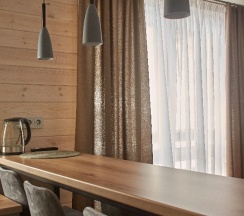 Отличный домик, для небольшой компании, очень теплый, все что нужно есть, хозяин всегда на связи, классно что можно прямо с горы приехать домой не ждать такси.