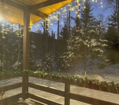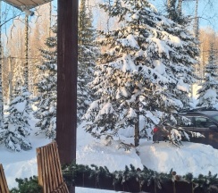 Вокруг лес, тишина, пушистый снег и никаких соседей) парковка и дорога почищены, до горы 5 минут на машине. Большая терраса, в чехле стоял мангал (мы не пользовались, но для любителей пожарить на огне будет идеально). Очень уютный и современный интерьер, есть все необходимое. В доме тепло, когда мы отдыхали, ночью было -22 и мы еще проветривали)) Хозяин всегда на связи, в любое время. Спасибо за отдых! Мы еще обязательно приедем, уже друзья и родственники взяли контакты))