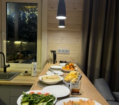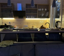 Замечательное место, тепло и уютно. Порадовала кухня, все необходимое и даже посудомойка 🤩 Очень комфортные спальные места. Шустрый wi-fi, большой телик. Но главное это чистота , все новое, никаких посторонних запахов 👍🏻 Есть скважина с чистой горной водой, можно пить из под крана