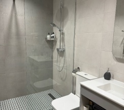 Просторная ванная комната, спальная и общая комната с кухней.