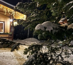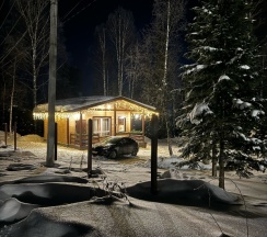 Уютный дом в самом лесу, в окружении елок, очень теплый , со всем необходимым на кухне, можно также жарить на гриле на улице, гостеприимный отзывчивый хозяин , все очень понравилось !