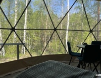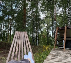 Чудесное пространство🤍 Приезжали зимой и решили отметить годовщину здесь летом, оба раза остались в восторге! Комфортные условия, очень живописное место в лесу, удобная дорога и близко к городу. Оба раза брали чан как любители - подача супер, удобно ко времени и комфортная температур. Уехали с приятными эмоциями, с удовольствием вернемся!