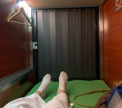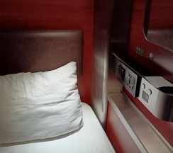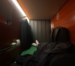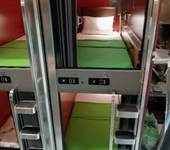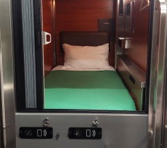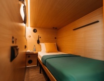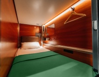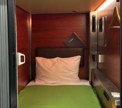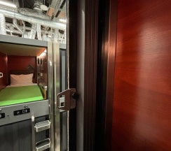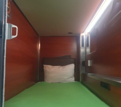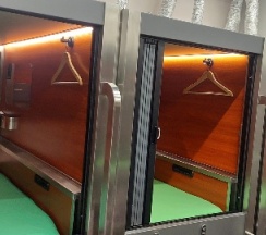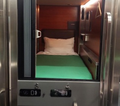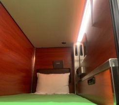 Заселялся по ваучеру приложения ЕVERY. На 4 часа капсула. Чистая постель, покрывало, тапочки. В самой капсуле не тесно. Длина примерно 1.9м. Есть розетки, usb, type-c, полочка, 3 вида освещения( лампа, ночная подсветка, подсветка полки) шторка гармошка с замком. Обувь можно оставить внизу в тумбочке. Холодильник с прохладительными напитками. Для комфортного сна лучше воспользоватся берушами.