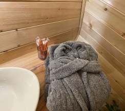 В домике есть все для комфортного проживания ( зубные щетки , посуда , халаты , шампунь , кондиционер и гель для душа нейтрального запаха как для девушки так и для мужчины подходит , полотенца и много всего )