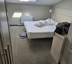 Комната уютная, чистая и комфортная. Персонал вежливый, расположение удобное. Спасибо!
