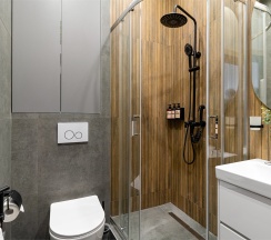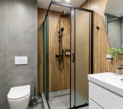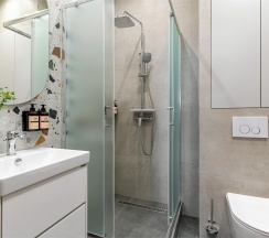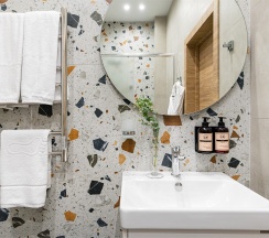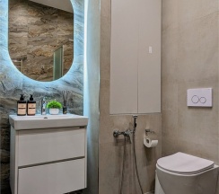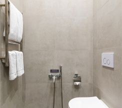 7. Сан узел с гигиеническим душем, душевой кабиной и косметикой индивидуального производства. Гигиенические принадлежности, набор одноразовых тапочек, халаты (по запросу).