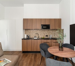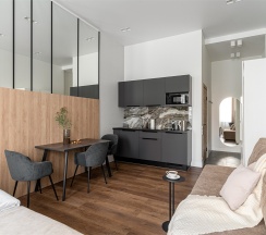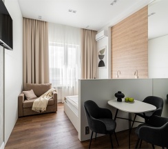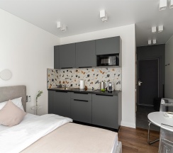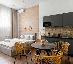 «STUDIO 15» — это современный апарт-отель уровня 3*, в городе Казани с отличным уровнем сервиса. Мы создали уютное и современное место для комфортного проживания основываясь на своем опыте и любви к гостиничному бизнесу. Наш отель предлагает своим гостям стильные номера, оборудованные всем необходимым для отдыха, работы и длительного проживания. Мы стремимся к тому, чтобы каждый гость почувствовал себя как дома, благодаря нашему внимательному отношению к деталям и высокому уровню сервиса. Рядом с отелем расположены достопримечательности, магазины, рестораны и транспортные узлы, что делает наше расположение идеальным для путешественников и деловых гостей. Приезжайте к нам и насладитесь отличным сервисом по доступной цене!