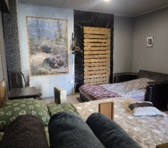 Берлога очень понравилась. Тепло уютно. Кровать удобная. Пятерочка магазин рядом. И отличная столовая недалеко. Никольская колокольня зажглась, это впечатляет. Рекомендуем. Хозяева очень внимательные.