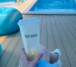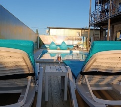 Бассейн — подогреваемый, как горячая ванна любви. Можно плавать, как русалка, даже если море слегка шипит на тебя ветром.