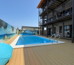 Великолепный отель, абсолютно новенький, удачно расположен и с точки зрения до моря 100 м, и по развлечениям (если вы на машине) много интересного в окрестностях, есть что посмотреть. Уютная, душевная обстановка, спасибо за это администраторам Дарье и Наталье. В номере есть все необходимое телек, холодильник, кондер, фен, шикарный ортопедический матрас(важный параметр для люлей 45+... И даже чуть больше ожидаемого- пляжные полотенца и махровые халаты:). Отдельный респект за бассейн с тёплой водой, уютный бар, комфортное кафе и мангальную зону. Из минусов, нам не повезло с погодой :(, но спас ситуацию бассейн с подогревом! ПРО Пересыпь то место куда хочется вернутся ещё раз!!! Так держать!!!