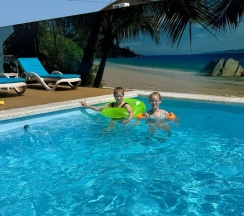 Бассейн, по крайней мере летом, без подогрева, и даже в +32° в нем прохладно.