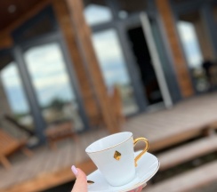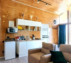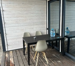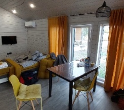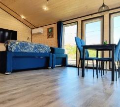 За 8000/сутки в июле ожидали большего. Сначала плюсы: вежливый администратор, ответит на все вопросы/запросы, довольно уютный домик, есть все необходимое. Из минусов: пришлось перемывать посуду, стол и кухонные поверхности, на столе пыль, на поверхностях крошки, заварочный чайник даже тронуть страшно. В стаканчике для зубных щеток тоже какая-то жижа была. Также был заявлен пляж, но он никакущий - бетон, посыпанный песком, на входе в воду галька. На территории есть неплохой бассейн, но хотелось всё-таки поплавать. С тишиной тут тоже не все гладко, днём газонокосилка, вечером чужие колонки до ночи, они тут не под запретом