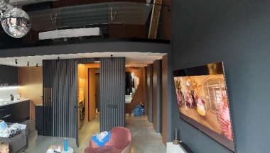 Всё очень стильное! Мебель, дизайн выше всех похвал, люстра из серебряных Шаров и ночью Вы можете любоваться своими звездным небом у себя на потолке!!!