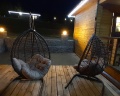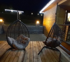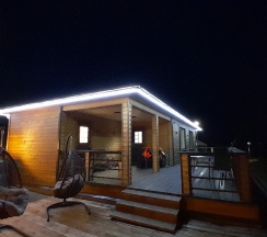 В домиках уютно,чисто,стильно и есть все необходимое (wi-fi,телевизор,микроволновка,гигиенические принадлежности и многое другое).Во всем доме тёплые полы,есть кондиционер + у каждого домика есть крытая мангальная беседка,где можно не только приготовить мясо,но и посидеть за столиком и полюбоваться видом на озеро.