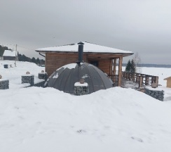 Прекрасное место, которое расположено вблизи водоёма и что самое главное в отдалённости от дороги! Поэтому отдыхаешь от городской суеты в гармонии с природой!) домик очень уютный, чистый и комфортный! Комфортабельные кровати, которые в совокупности с чистым воздухом=отличный сон) у каждого дома есть своя крытая мангальня, которая позволяет, даже если не погода, приготовить мясо, рыбу и овощи! Также на территории есть детская площадка! Шикарная баня и чан, которые позволят прогреть свои косточки, и расслабить не хуже спа-салона, а возможно даже лучше. Всё необходимое для, готовки, отдыха и релаксации есть! Зимний отдых удался на 1000%)