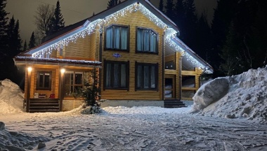Здесь же можно заказать баню в соседнем доме, жаркая с прохладной купелью в парилке. Резиновые тапочки и простыни предоставляются.