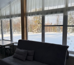 Тихое, сказочное место, панорамное окно выходит на прекрасный лес. Дом просторный, хорошо оборудован, в доме чистота! Всю ночь шел снег, а утром оперативно территория была очищена от снега! Доброжелательные хозяева!