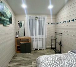 Отлично отдохнули после горы, приятная атмосфера, свежий ремонт, отделка со вкусом. Есть всё необходимое для комфортного проживания и отдыха. Останавливались с 1 на 2 марта, 8 человек, места более чем достаточно, порадовали настольные игры, в домино уже давно не играли с детьми, в общем, кому музыка, кому мультики, а нам и настройки зашли на ура. Евгению спасибо 🤝, рекомендую к рассмотрению этот дом. Вид с окна второго этажа достоин отдельного комментария 🔥 Возможно единственное, на что хотелось бы обратить внимание это отсутствие перила у лестницы, но это не критично, если не бегать постоянно вверх вниз 🫣