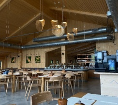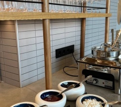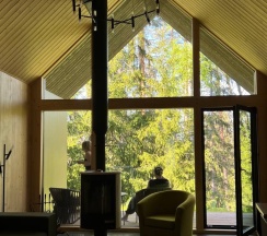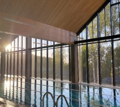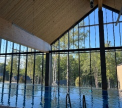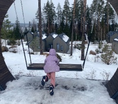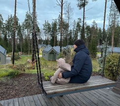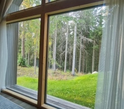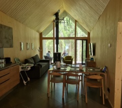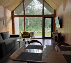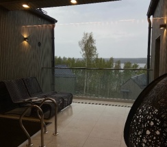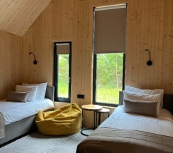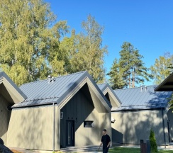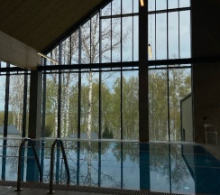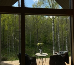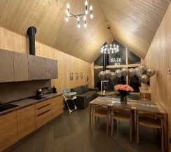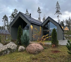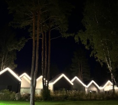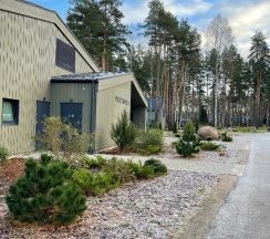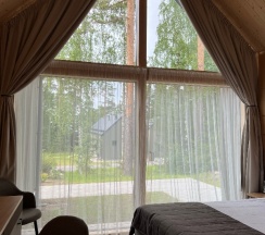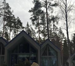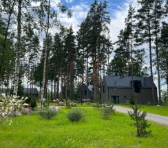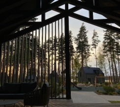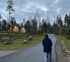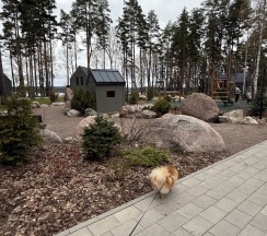 Отдыхали на корпоратив здесь. Сняли два дома в конце улицы. Окна выходят в лес, хорошо, тихо. Дома со всеми удобствами, сауна внутри, кухня. Поели, погуляли. Сходили в СПА на территории, был включен вкусный завтрак, шведский стол. Очень сочные фрукты.