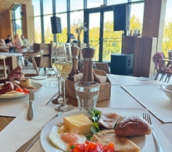 Очень понравилось🤩 огромная красивая территория , вкуснейшие завтраки и в целом ресторан. На берегу озера 😍 большой спа с 2 бассейнами и саунами и красивейшая детская комната и много других активностей ! Нам очень понравилось - вернемся обязательно ещё! Прекрасно провели выходные