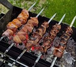 На территории есть магазин и фудтрак (в ассортименте вафли и блины), которые работают только в пятницу, субботу и воскресенье. В магазине есть хлеб собственной выпечки, сыры от партнеров, колбасы, рыба, пельмени и вареники. Для заморозки можно там же купить термопакет. Есть сосиски, которые можно пожарить на мангале у домика.