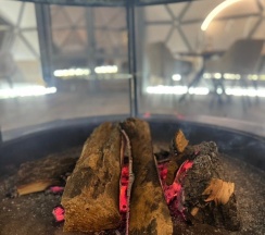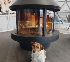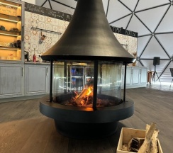 И когда заходишь с мороза хочется обнять этот красивый круглый камин.