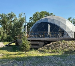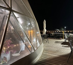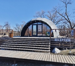 Неожиданно сбылась мечта детства - пожить в купольном здании. Отдохнули душой и телом в эти субботу-вокресенье. Нам понравилось очень и ОЧЕНЬ! Территория прекрасно ухожена, Домики расположены так, что никто не мешает друг другу. В фасадное окно открывается панорама на зеленую территорию, детский Центр, ресторан. В заднее панорамное окно мы видим только природу - зелень, плодовые деревья, что дает ощущение необитаемого острова)) Бассейн - выше всяких похвал! Верховья Дона всегда с чистой водой - это очень важно. Народ плавает на сапах, водяных велосипедах, загорает на берегу. Персонал очень внимательный, доброжелательный! Короче говоря - рекомендую для спокойного семейного или даже романтического отдыха)))