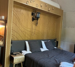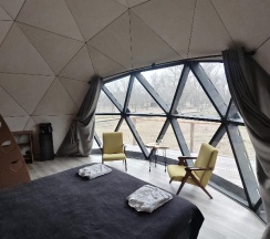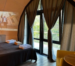 Неожиданно сбылась мечта детства - пожить в купольном здании. Отдохнули душой и телом в эти субботу-вокресенье. Нам понравилось очень и ОЧЕНЬ! Территория прекрасно ухожена, Домики расположены так, что никто не мешает друг другу. В фасадное окно открывается панорама на зеленую территорию, детский Центр, ресторан. В заднее панорамное окно мы видим только природу - зелень, плодовые деревья, что дает ощущение необитаемого острова)) Бассейн - выше всяких похвал! Верховья Дона всегда с чистой водой - это очень важно. Народ плавает на сапах, водяных велосипедах, загорает на берегу. Короче говоря - рекомендую для спокойного семейного или даже романтического отдыха)))