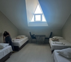 Хороший комплекс, заселили ночью без проблем (бронировали днем), нас было две семьи с детьми и без всех отлично разместили, мебель вся хорошая-новая, спать комфортно, выспались отлично! Предоставлены полотенца, тапочки, из средств гигиены был один шампунь и бальзам но на. Это не расстроило, мы со своим. Отдельное спасибо девочкам из столовой, лень тепло встретили(хоть и ночью) накормили вкусно!!! У дочки в дороге заболело горло, девочки ей сделали чай с медом и лимоном не по меню, такие мелочи всегда заметны☺️!!! Фото взрослых номеров, у детей был отдельный номер с двумя односпалками!