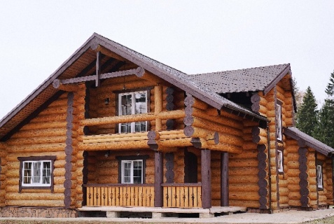 Двухэтажный сосновый сруб из массивных бревен, общей площадью 188 м2, с балконами и террасами более 200м2, с видами на лес и территорию.