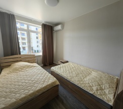 Площадь от 45 до 49,5 кв.м. Планировка – кухня, две спальных комнаты, прихожая, ванная комната. В большинстве номеров имеется меблированный балкон.