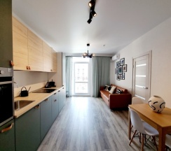 Что касается спальных мест, есть апартаменты, рассчитанные на проживание максимум четырех гостей, – они оснащены двумя двуспальными кроватями (диванами). Также есть варианты для пяти гостей – в них помимо двуспальных кровати (дивана) предусмотрены еще два спальных места на кухне и дополнительное кресло-кровать.