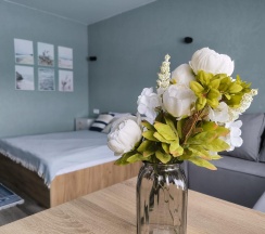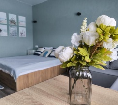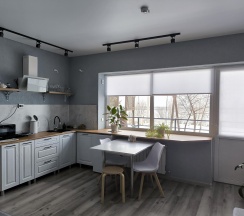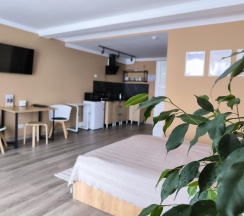 Гостиница просто супер! Шикарный вид из номера, в котором есть панорамные окна. Небольшой балкончик тоже имеется. В самом номере есть все, что необходимо для проживания. Есть кухня и можно готовить самостоятельно. Посуда и плитка есть. Даже кофе, чай и подсолнечное масло оказались там. Есть стиральная машина. Номер чистый, ухоженный, просторный. Нам все понравилось. Интернет хорошо работает.